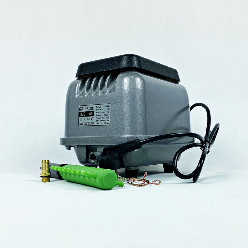 1 Airpressor with 80l/min. Designed for aeration of home ponds and pools for fishing.